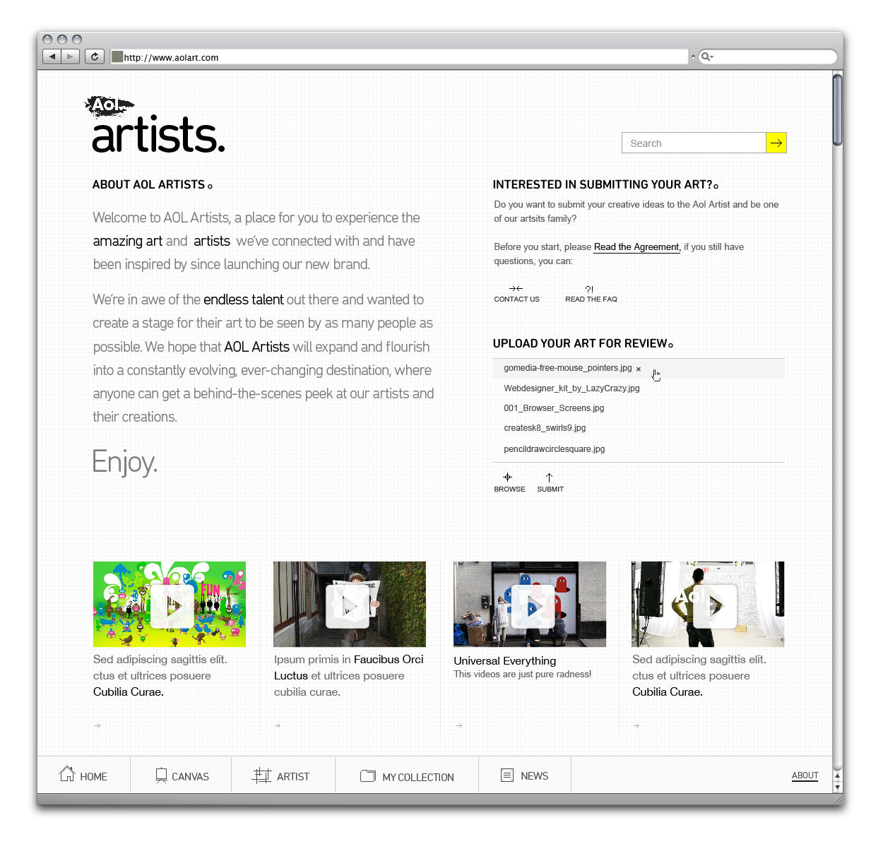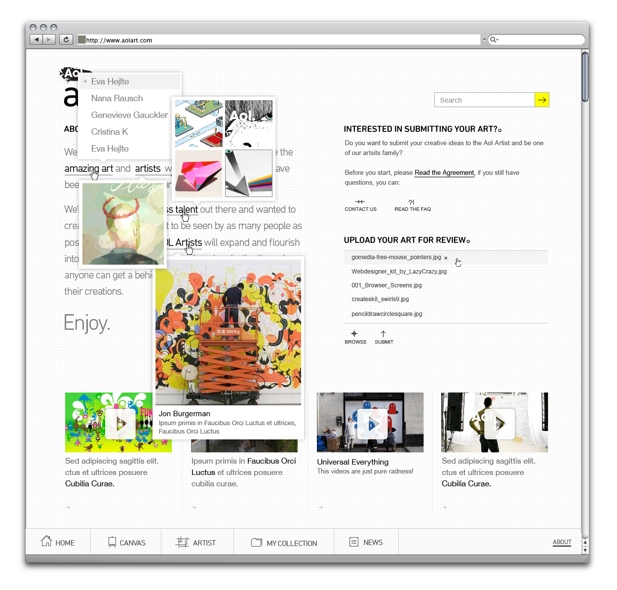 Aol Artists Canvas Page (Random Grid View)